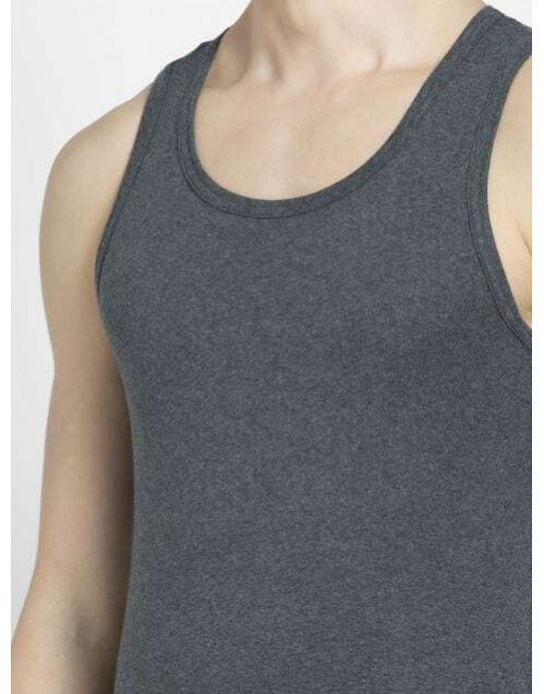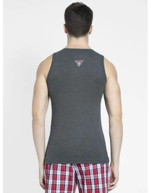 Deep Round Neck Sleeveless Vest - Charcoal Melange & Neon Orange